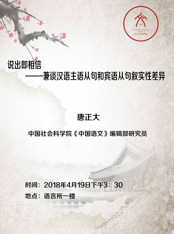 2018.04.19唐正大:说出即相信——兼谈汉语主语从句和宾语从句叙实性差异