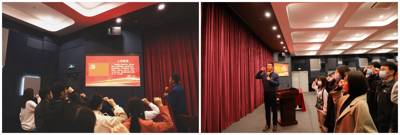 会上,人文学院副院长王双成带领全体党员重温了入党誓词。“我志愿加入中国共产党,拥护党的纲领,遵守党的章程,履行党员义务,执行党的决定,严守党的纪律……”与会党员佩戴党员徽章,精神饱满,面向鲜红的党旗,右手握拳过肩,铿锵有力地发出承诺和誓言。