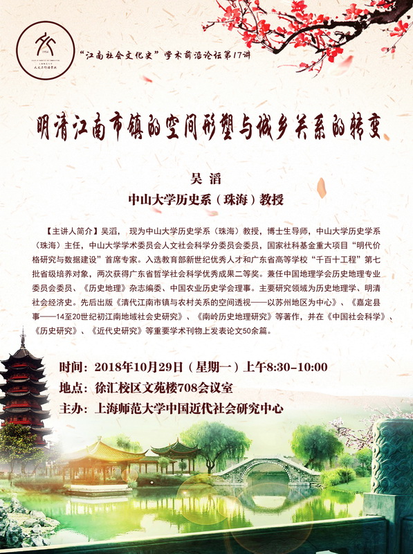 2018.10.29吴 滔:明清江南市镇的空间形塑与城乡关系的转变