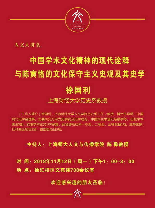 2018.11.12徐国利:中国学术文化精神的现代诠释与陈寅恪的文化保守主义史观及其史学