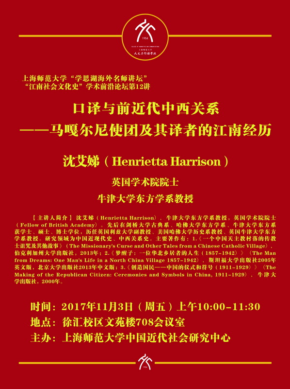 2017.11.03沈艾娣(Henrietta Harrison):口译与前近代中西关系——马嘎尔尼使团及其译者的江南经历