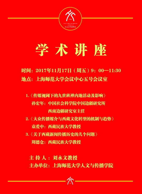 2017.11.16—17日传媒与西藏研讨会及系列讲座预告