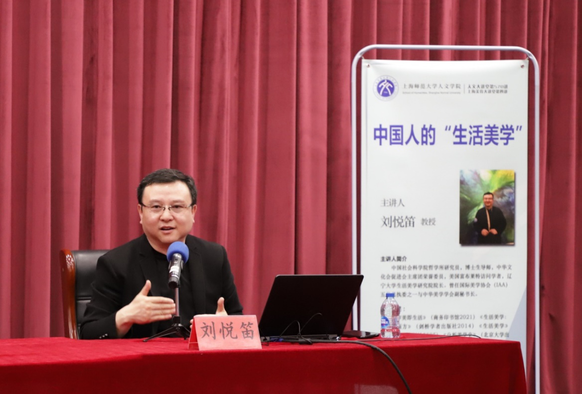 5月13日下午,上海美育大讲堂第四讲《中国人的“生活美学”》在上海师范大学徐汇校区文苑楼二楼报告厅顺利举行。中国社会科学院研究员、博士生导师刘悦笛教授受邀担任专题讲座的主讲人。上海师范大学百余名师生参与讲座,在刘教授的指引下展开了对生活美学的思考。讲座由上海师范大学团委书记潘黎勇副教授主持。