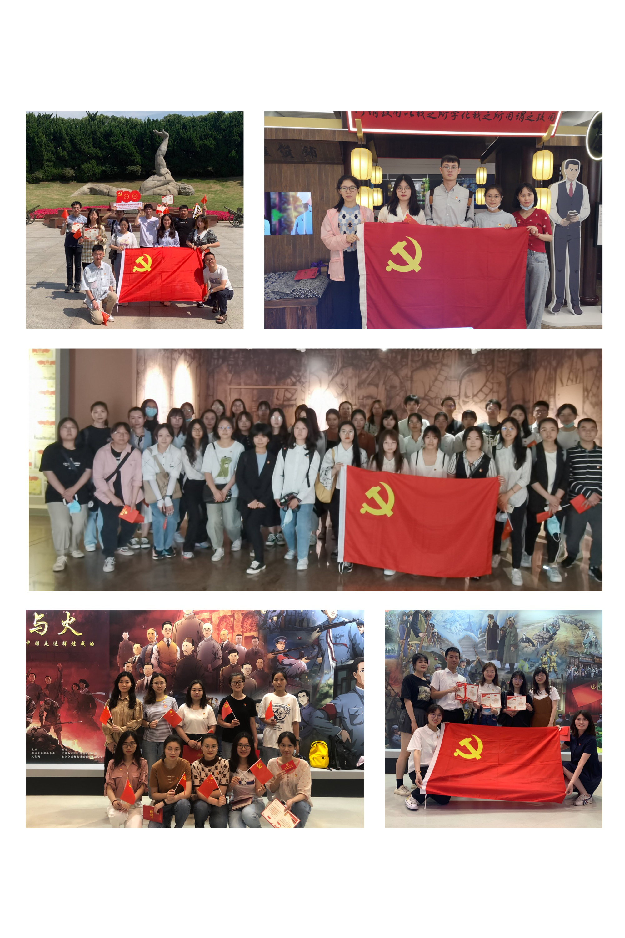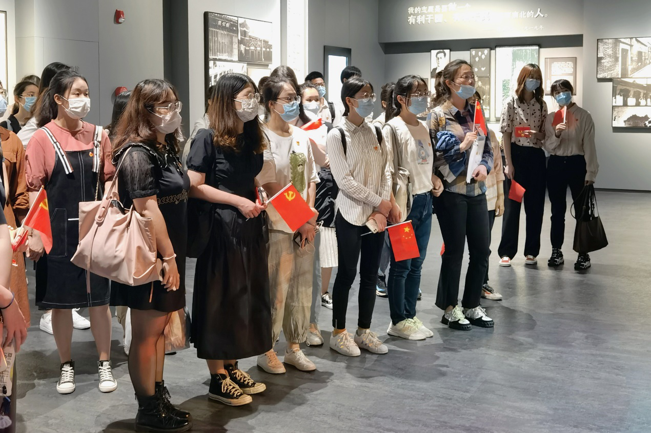 仪式之后,在讲解员们的带领下,党员同志们参观龙华烈士纪念馆,照片墙上一张张年轻的面庞昂扬着革命的斗志;弹痕累累的羊毛背心映衬出青年伉俪的革命爱情;舞蹈与全息投影的完美结合映射出二十四烈士的英勇气势……