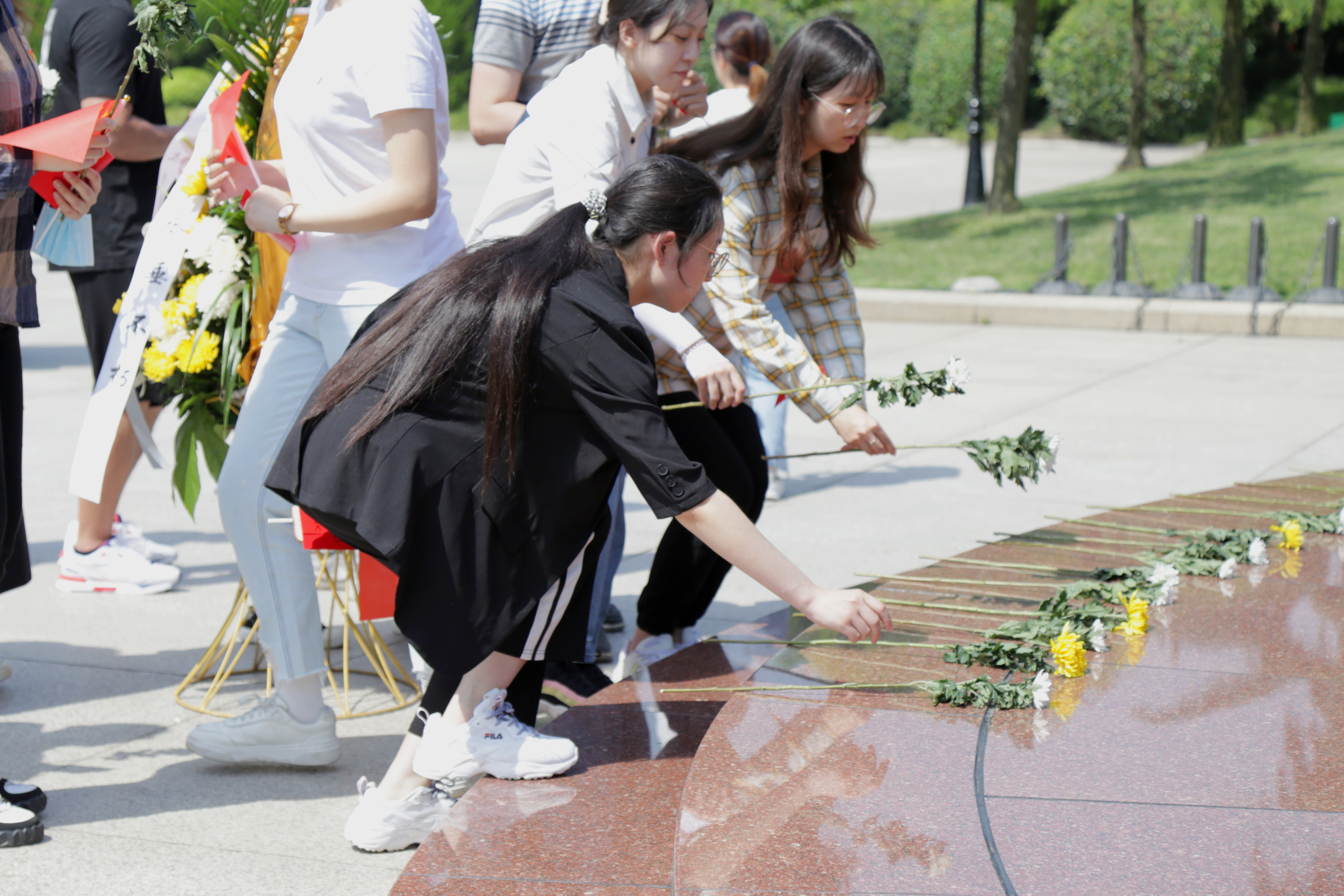 怀着崇高的敬意和深切的哀思,党员同志们向无名烈士墓敬献鲜花。百年来,无数革命者用青春与生命谱写了可歌可泣的壮丽篇章,在场师生党员共同合唱《歌唱祖国》,永恒的旋律萦绕在心中,吾辈必将不负先烈重托,积极工作,报效社会。