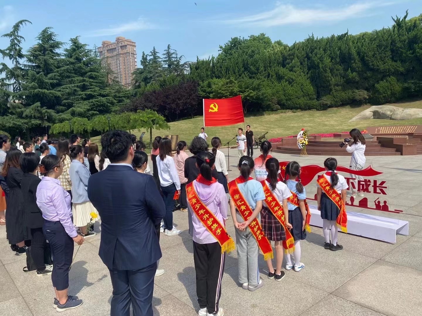 毕业初心当牢记,百年风华永随行。5月30日上午,“国旗下成长”徐汇青少年龙华烈士陵园升国旗祭英烈仪式在龙华烈士陵园无名烈士墓前广场上举行。徐汇区团区委兼职副书记卫华,上海师范大学人文学院党委书记朱政,院党委委员、副院长孙珏岷,院党委委员、院工会主席单虹,院党委副书记、副院长陈重来,学院教工第二党支部书记张会超,教工第五党支部书记张虹,青年教师党员潘牧天,学院组织员、辅导员以及百余名人文学院2021届本科、研究生毕业班党员参与了本次活动。活动由学院2017级学生第一党支部副书记倪卿同学主持。