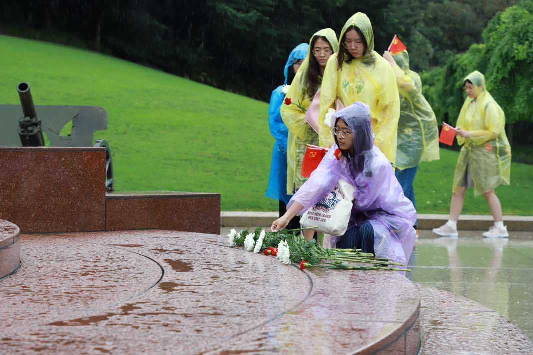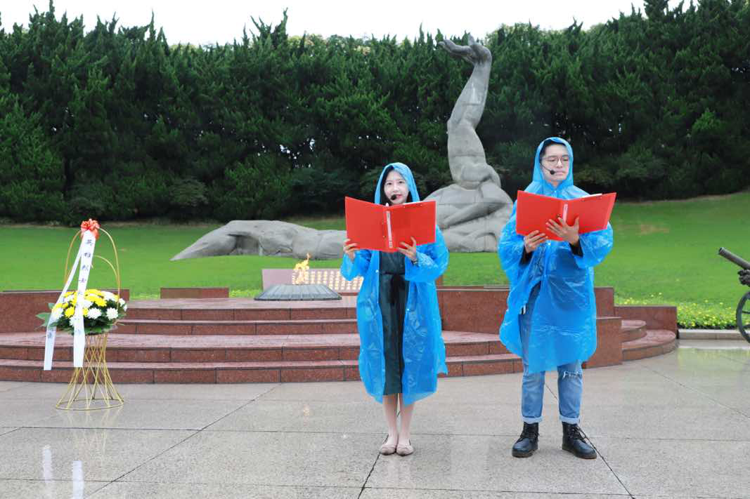 “龙华授首见丹心,浩气长虹烁古今。千树桃花凝赤血,工人万代仰施英。”学院2019级本科学生党支部党员陈紫瑜在无名烈士墓前向大家分享了她寻访的中共早期无产阶级革命家赵世炎的故事,“志士不辞牺牲,信仰之火不灭”,他以国家命运为己任,将生命托付人民事业,陈紫瑜向新时代党员们发出倡议,忠于信仰,牢记使命,从革命先烈的英勇事迹中汲取初心力量、斗志昂扬,于危难处挺身,融时代中成长。