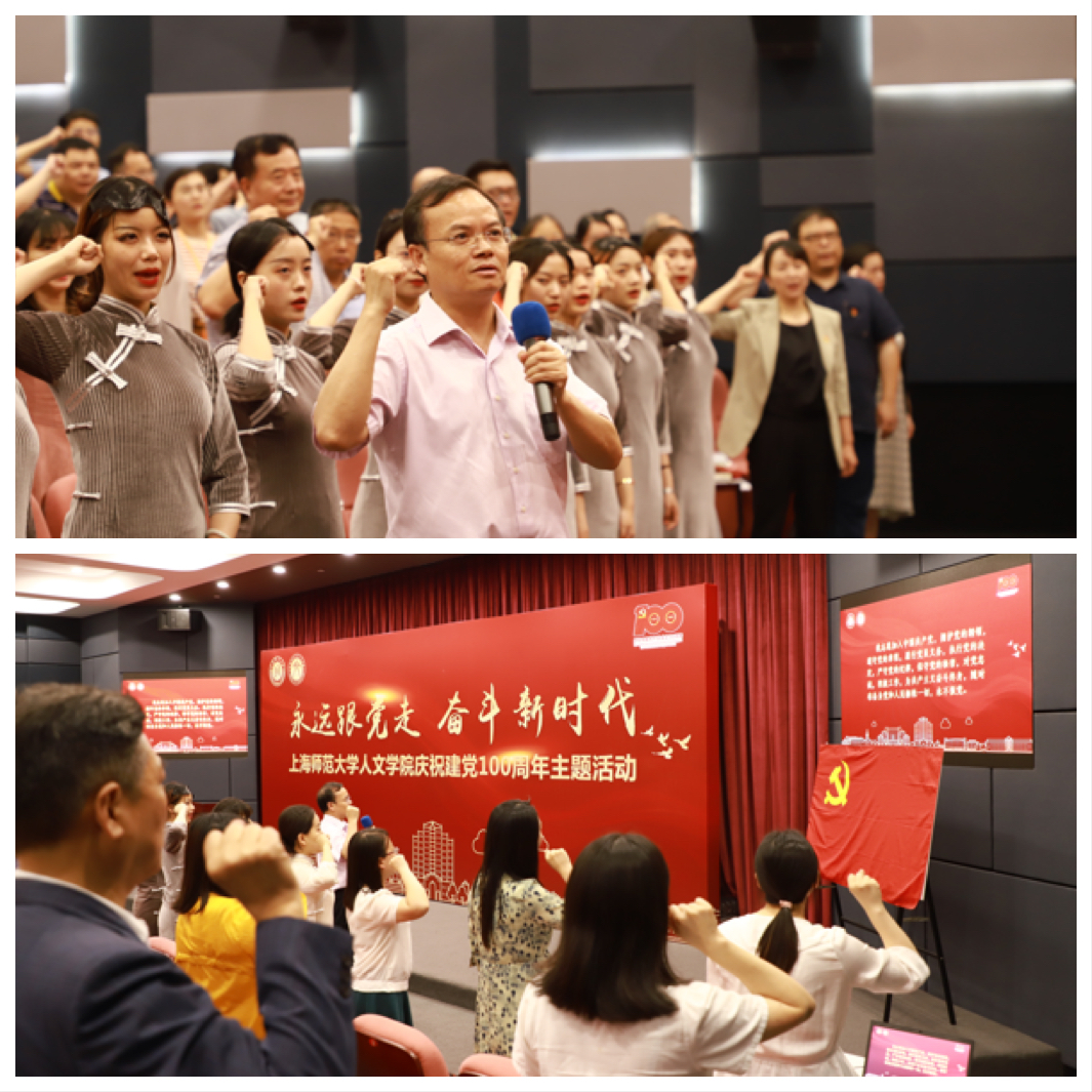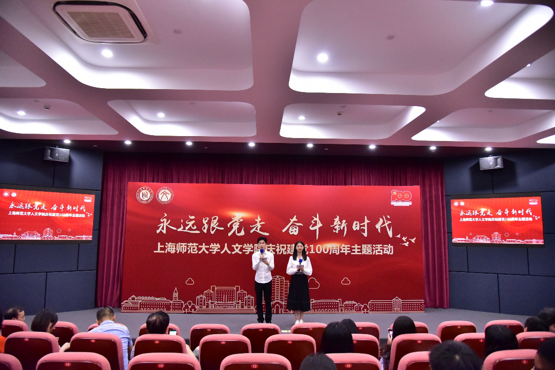 百年征程波澜壮阔,百年初心历久弥坚。值此建党百年之际,为激励师生党员不忘初心、牢记使命,以饱满的热情和昂扬的斗志,在百年大业的土地上不断开拓,在全面推进上海高水平地方高校建设中奋力拼搏,6月25日下午,人文学院“永远跟党走,奋斗新时代”庆祝建党100周年主题活动在文苑楼二楼礼堂隆重举行。学院全体教师党员以及部分学生党员代表参与本次活动。活动由学生党员张妮、胡昊主持。