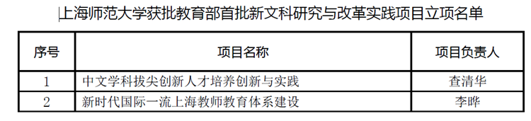 近日,教育部高等教育司发布了《关于首批新文科研究与改革实践项目拟立项项目名单的公示》,我校申报的《中文学科拔尖创新人才培养创新与实践》和《新时代国际一流上海教师教育体系建设》2个项目成功获批。其中,《中文学科拔尖创新人才培养创新与实践》项目负责人为我院院长查清华教授。