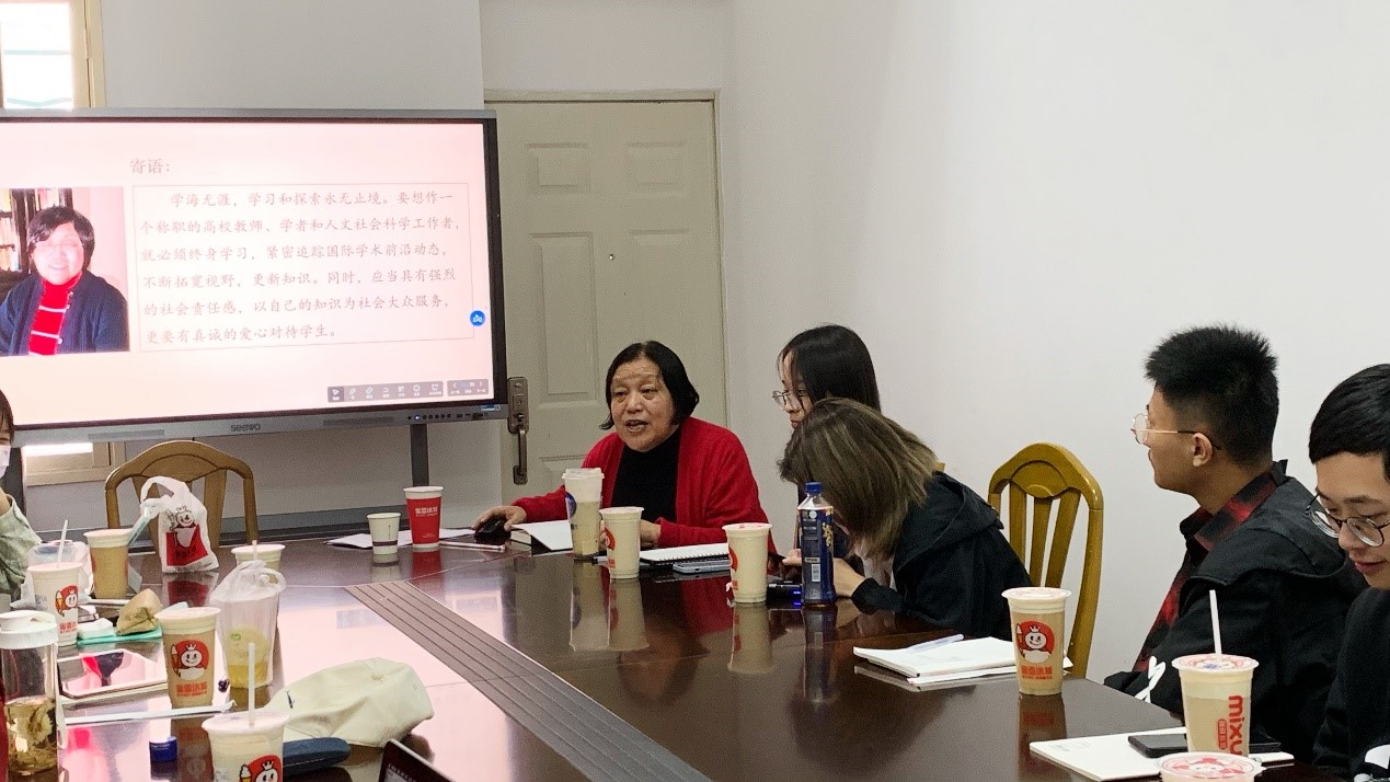首先,裔老师与大家分享了她曲折的求学过程,描述了自己由下乡知青到复旦读博再到高校任教这一浓墨重彩的人生经历。接着,裔老师讲述了自己不断关注学术前沿,从事妇女与性别史研究的过程;还介绍了她进行世界文化史、西方文明史和古希腊罗马社会生活史研究与教学的情况。令听讲座的同学印象最为深刻的是,裔老师学无止境终身学习的态度和满腔热忱关心爱护学生的精神。她在上海师范大学从教三十年纪念相册上曾经写下了自己的感言:“师生之爱:心灵的港湾;终身学习:创造力的源泉”,她在半个世纪奋斗之路和学海泛舟过程中的感悟对学生们很有启发。