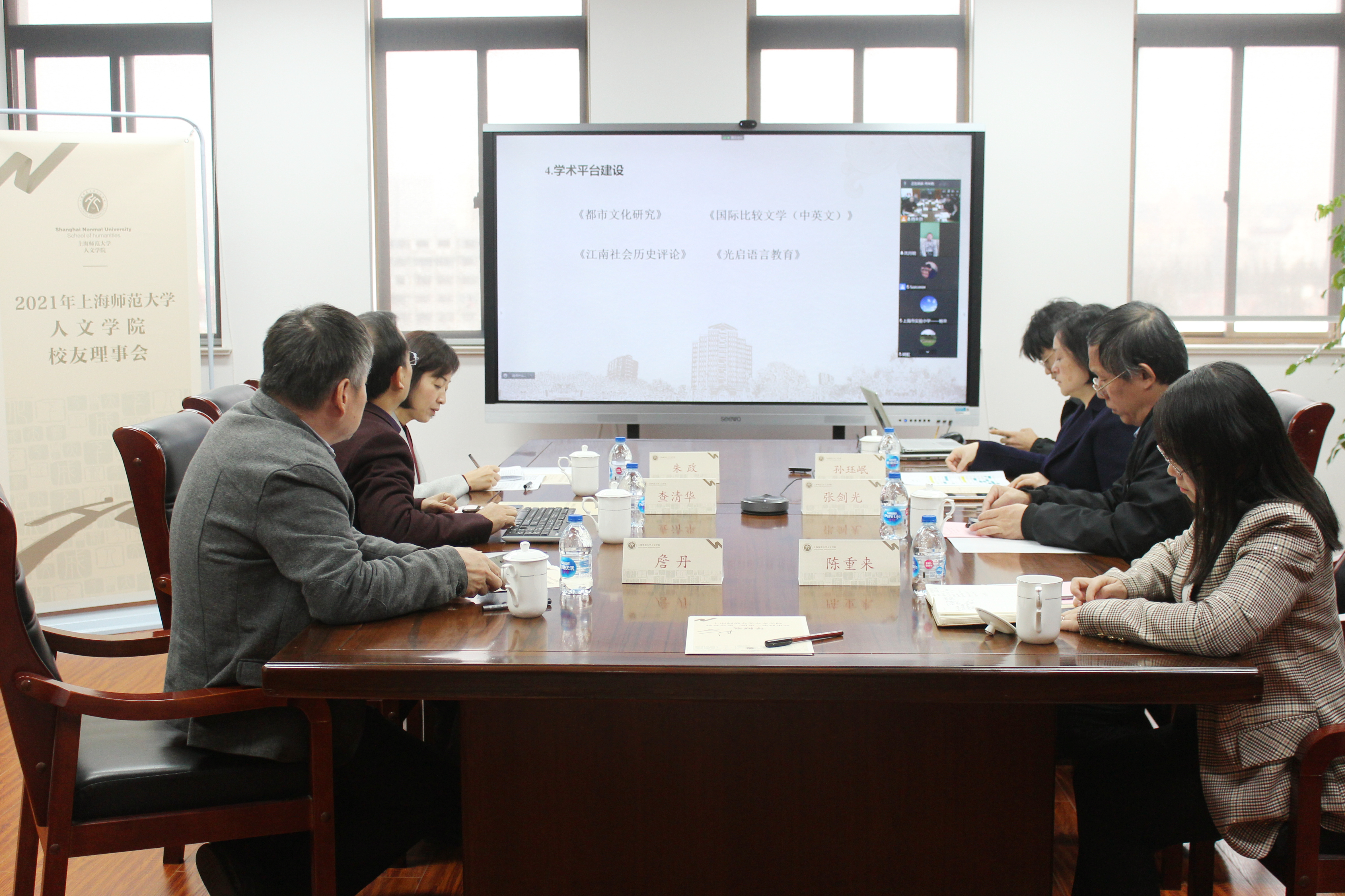 11月13日上午9时30分,人文学院校友理事会一届三次会议在上海师范大学徐汇校区文苑楼909会议室举行,会议采用线上线下融合方式进行,校外理事参与了线上会议。会议由人文学院校友理事会秘书长詹丹主持。