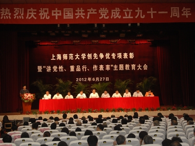 6月27日下午,以建党九十一周年为契机,创先争优专项表彰暨“讲党性、重品行、做表率”主题教育大会在东部礼堂顺利召开,各分党委委员,教工党支部书记,组织员,在职校第六次党代会代表,受表彰对象等出席大会。会议由校长张民选主持。
