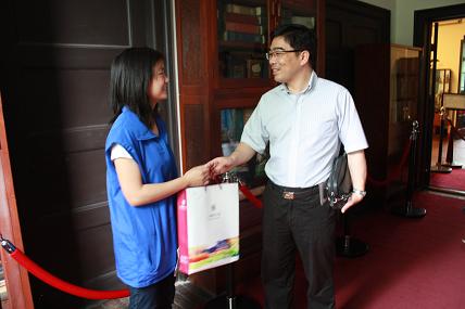 巴金故居副馆长周立民感谢我院对志愿者工作的大力支持,肯定了我院学生在志愿者工作中的卓越贡献,并向我院领导赠送了由我院志愿者编写的志愿者刊物《憩园》。