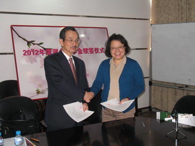 1115上午,日本通用工程股份公司(以下简称“GE”公司)与我校女子文化学院在文苑楼708室举行了“2012年度河合奖学金”续签仪式。