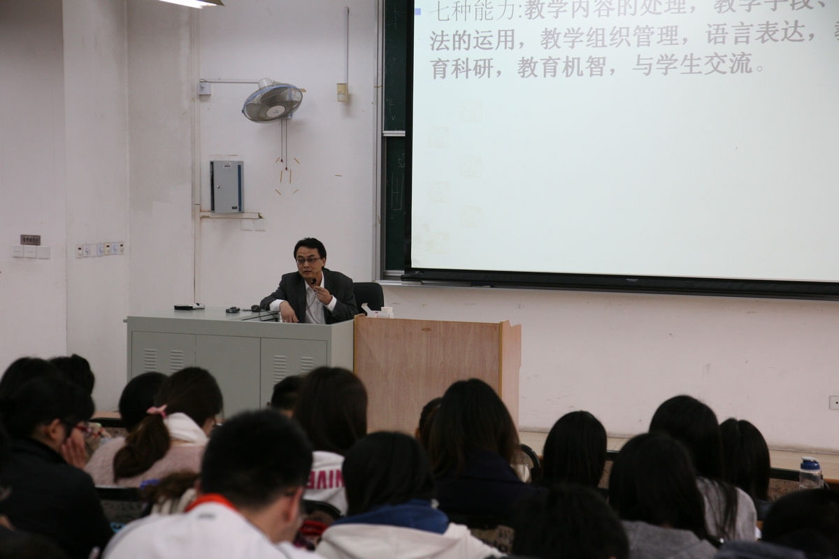 讲座伊始,孙老师首先与学生们交流了自己的从教经历,分析了目前教师的就业前景并鼓励大家积极提升自己的教学技能。随后,孙老师结合自身的教学经历,分别从课堂掌控、新教师的入职要求、如何在课堂上与学生进行交流等方面做了深入的讲解和指导。通过讲座,各位同学更明确了未来教师的职业发展和能力要求,并表示在大学中要全方位的提升自己,以应对教育改革的方向和未来发展。