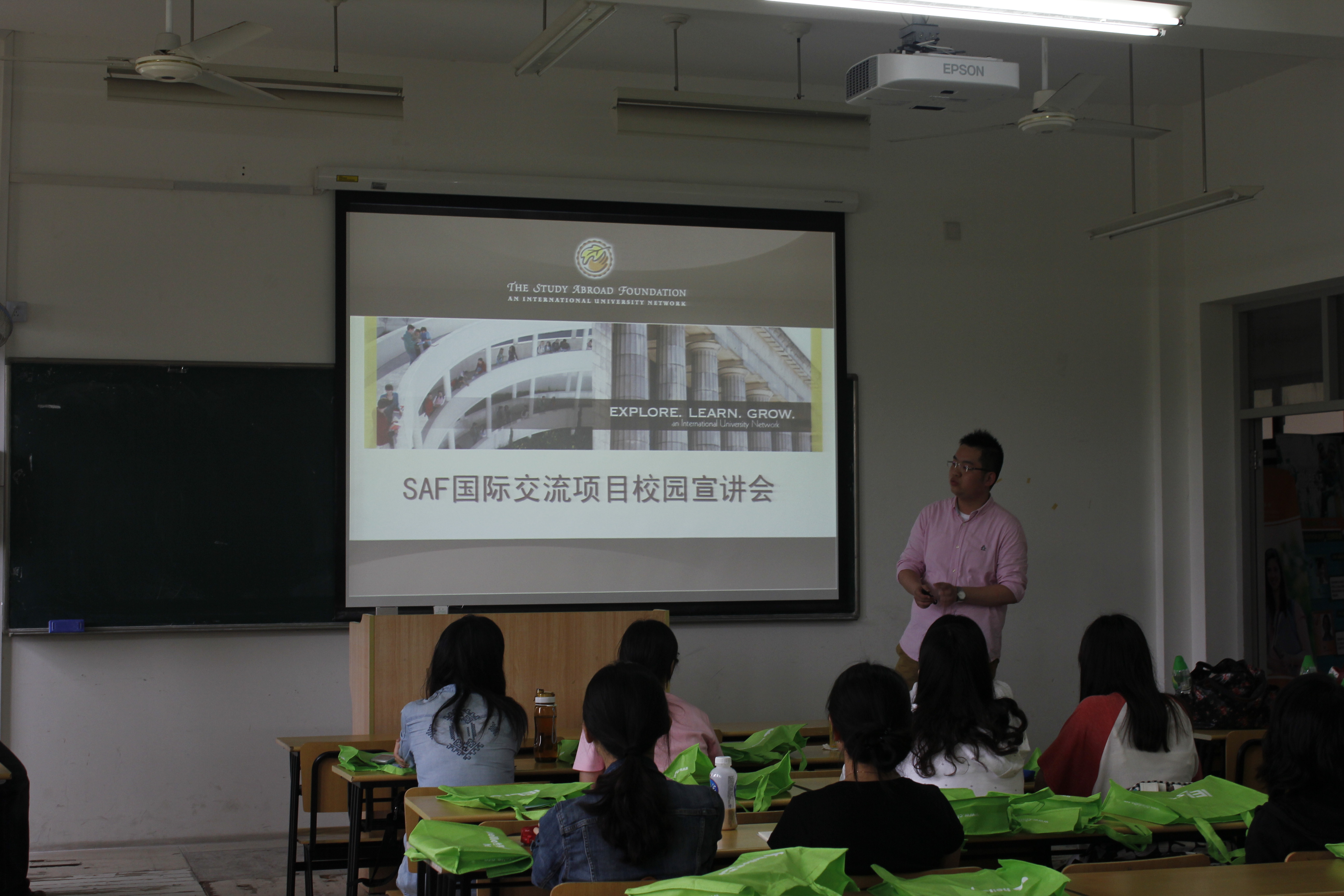5月15日下午,人文与传播学院邀请了英国总领事馆的教育推广经理许珣、考试市场官员金怿丰在五教304举行了SAF国际交流项目校园宣讲会。围绕英国文化体验之旅和正确认识雅思考试两方面进行了介绍,帮助有意向出国交流或是留学的同学有更明确的努力方向。