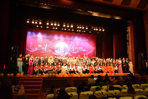 晚会伊始,学院党委书记戴冰老师代表学院致新年辞,他以简洁又不失幽默言语总结了我们共同经历的2015年,同时也对2016年学院的发展进行了展望。晚会在glee音乐社团所带来的《don’t stop believing》美妙歌声中拉开帷幕。晚会上,朗诵、相声、歌声不绝于耳;表演、展示、小品目不暇接。既有古典舞和服饰展示、令人捧腹的相声《满腹经纶》、充满民族风情的舞蹈《多彩民族》,又有万众瞩目的小品《打劫》等精彩的表演,充分展现了我院本科与研究生们的风采。在这其中,学院领导班子成员带来的朗诵节目《我们的故事》更是将整台晚会推向高潮,时而婉转时而高亢的朗诵,博得台下阵阵掌声;宗守云教授的笛子独奏《荫中鸟》、杨剑龙教授的原创诗歌朗诵《情诗三首》以及董大学老师的歌曲《新贵妃醉酒》更是让台下的师生叹为观止,老师们的倾情演出博得阵阵掌声。而在晚会的最后,学生会干部、研究生会干部以及辅导员们的舞蹈表演将整台晚会推向了新的高潮。