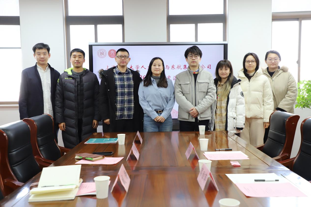 为推动校企协同育人机制建设,促进人才培养与社会需求紧密对接,1月22日上午,人文学院党委副书记、副院长戚静,人文学院本研带班辅导员李墨、司文超、孟祥梁,在上海师范大学徐汇校区文苑楼与前来走访交流的东航实业集团有限公司团委书记蔡雅萍、中国东方航空设备集成有限公司团委副书记周楠、上海云锦智运科技服务有限公司团支部书记沈佳诚,共同召开2026年招聘交流会。