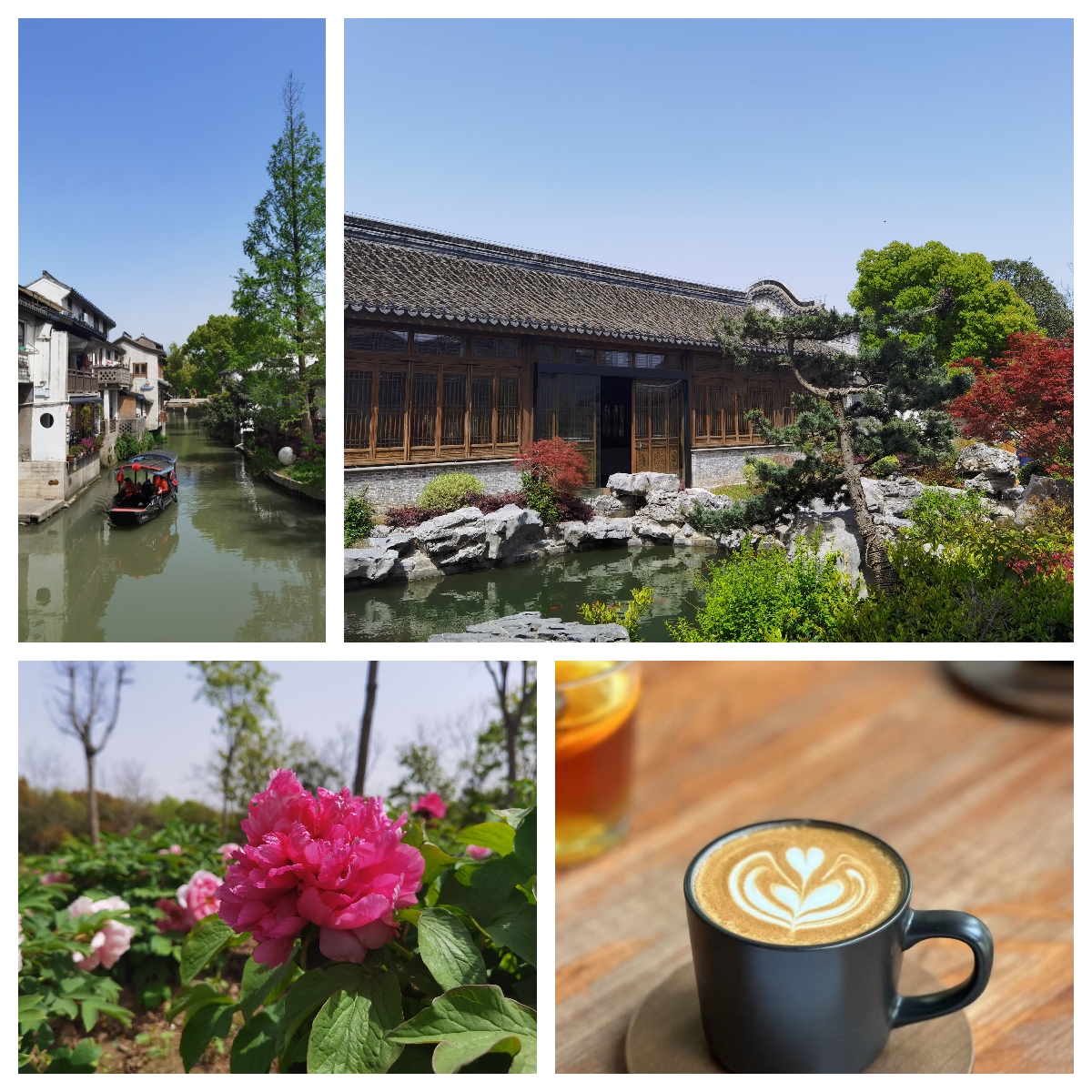 四月牡丹国色香,在奉贤海湾国家森林公园内,百亩牡丹正竞相开放,各显风姿,芬芳满园。大家在蜂飞蝶舞的花丛中徜徉,或谈笑风生,或用手机留住这满园春色。上午活动结束后经过短暂休整,老师们来到附近青溪古镇继续游玩。青溪古镇位于上海奉贤区东部,隋末唐初成陆,宋初成村,溪水穿村而过,通大海,两岸芦苇茂密葱绿,故称青溪,距今已有一千四百多年历史。漫步老街,一幢幢明清建筑、一户户庭院宅第、一条条古街幽弄,不断映入眼帘,这里有着一些江浙古镇所没有的娴静和安宁。在渔码头的对面是南园,现称"一尺花园",步入其中,太湖石假山、绿植、亭台楼阁让人大开眼界。在临溪而建的平台上,一边享用咖啡,一边看着溪对面来来往往的人群、古镇街道,让人倍感轻松惬意。