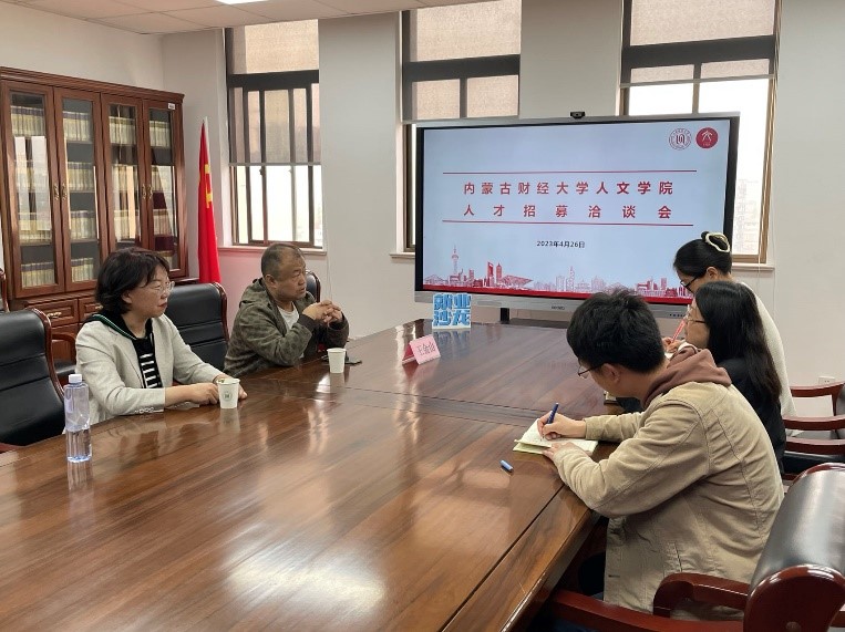 会上,王教授详细介绍了内蒙古财经大学人文学院的情况及招聘岗位,解读了相关人才需求、招聘政策和待遇等情况,表达了内蒙古财经大学招揽优秀人才的决心和诚意。陈重来老师和与会辅导员分别就学院硕、博毕业生的数量规模、专业分布等情况进行了介绍,并就当前同学们的就业意向和瓶颈问题等作了交流。本次洽谈会促进了学院同全国地方高校在科研人才培养方面的合作,对于进一步拓展学院高层次人才就业、拓展学生学术和职业发展道路起到了积极的作用。