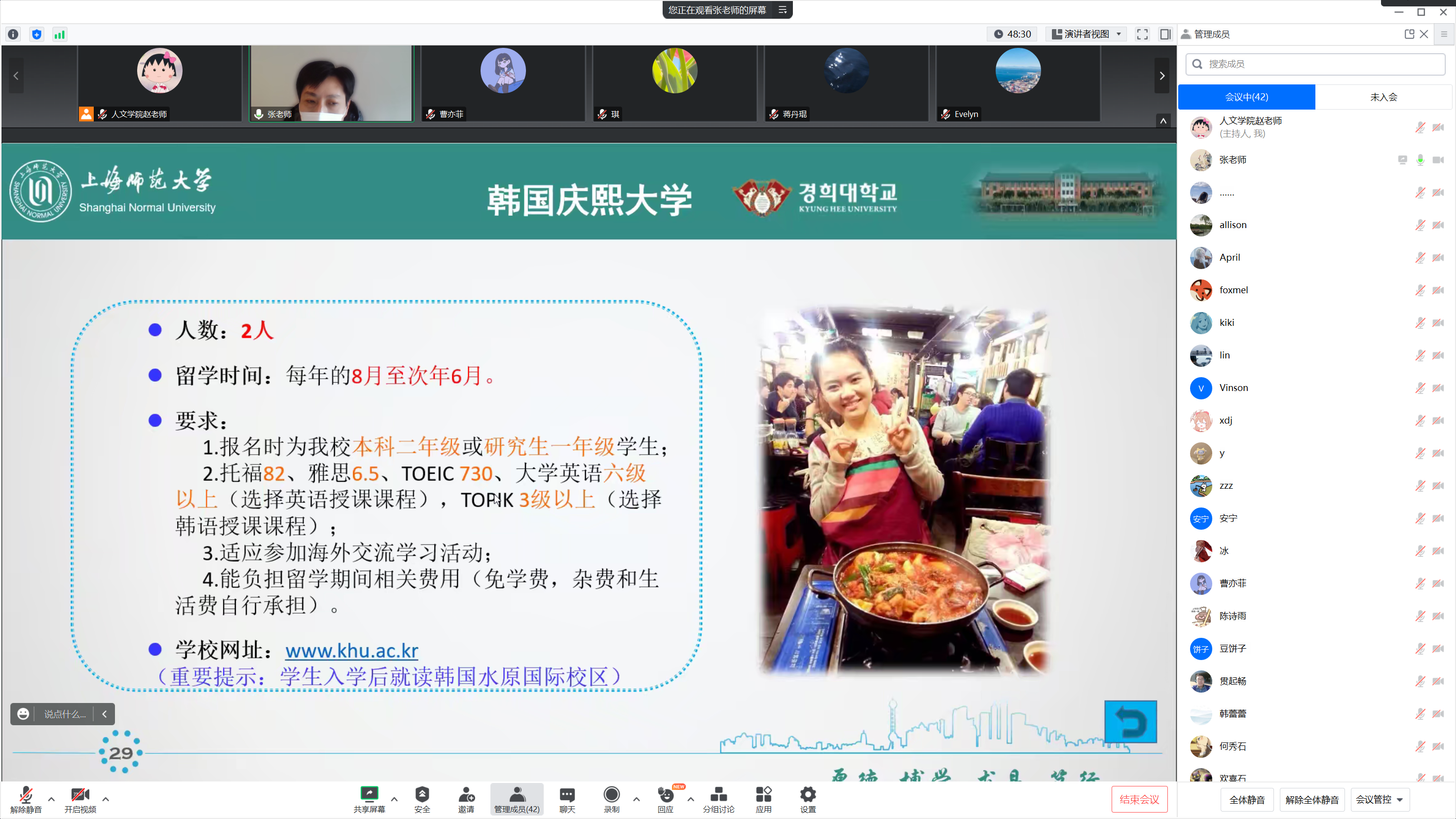 4月26日下午4点,学院召开英国莱斯特大学双硕士学位项目分享会。英国莱斯特大学双硕士学位项目是我院牵头签署的两校双硕士学位联合培养项目,此次分享会特邀该项目的牵头人陆伟芳老师,世界史系李尚君、蔡萌老师,以及顺利完成该留学项目归国的两位同学,分享项目申请过程、留学期间学习和生活经历,帮助有意向申报该项目的同学解答疑问。
