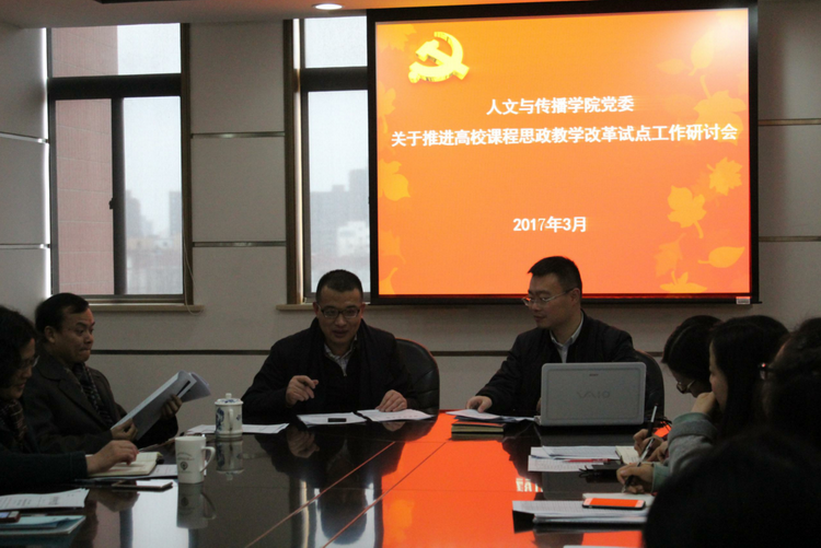 3月13日下午,人文与传播学院党委关于推进高校课程思政教学改革试点工作研讨会在文苑楼708举行。院长陈恒、院党委书记戴冰、教学副院长查清华、院党委副书记、副院长杨康贤、教工党支部书记、部分教师代表、组织员、辅导员出席会议。会议由院党委书记戴冰主持。
