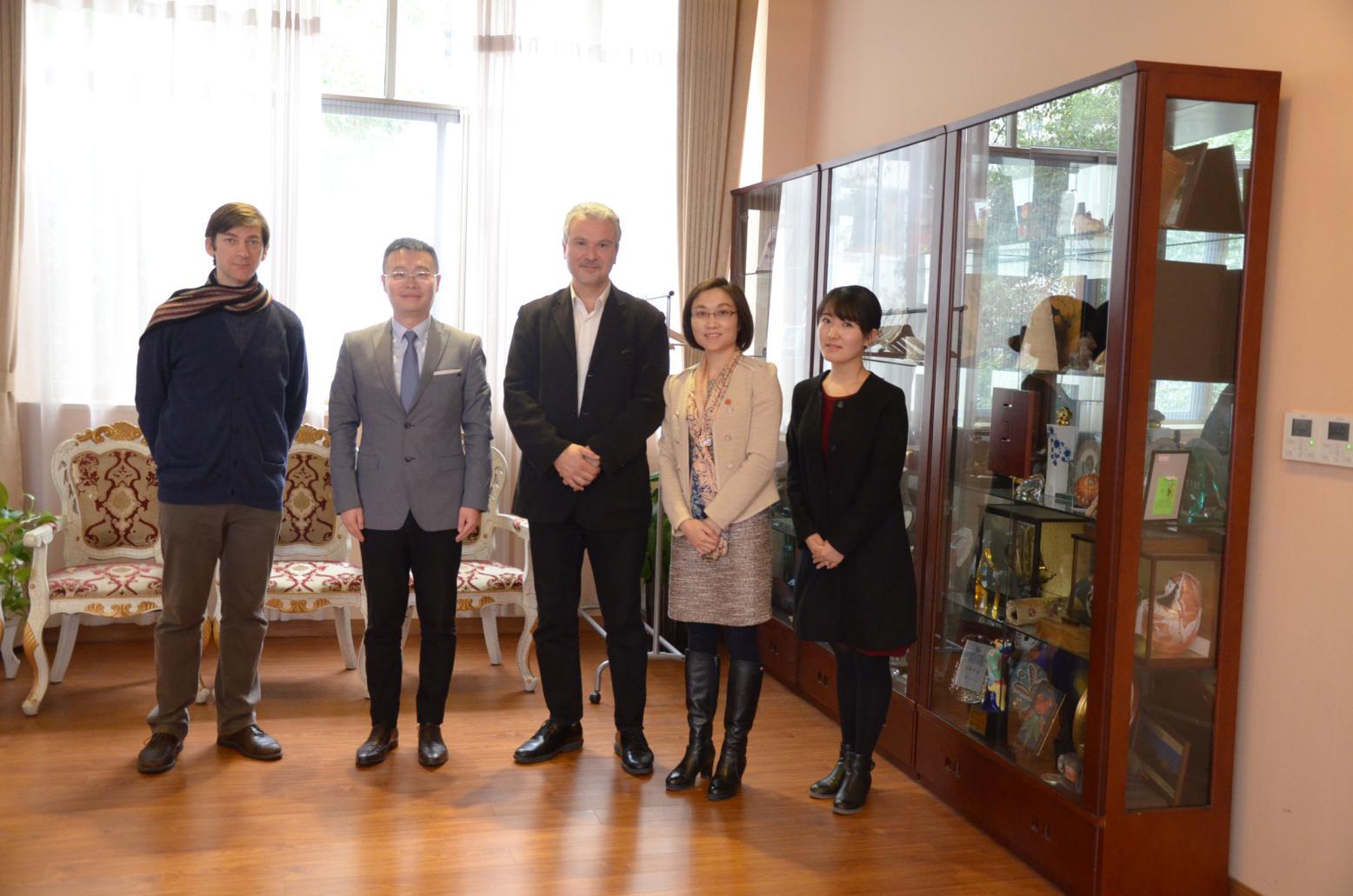 法国里昂国立高等戏剧学院Thierry PARIENTE院长感谢国际交流处的邀请,并表达了对两校校园文化交流项目以及建立孔子学院的兴趣。法国里昂和上海是姐妹城市,有着深厚的中法文化交流渊源。法国里昂国立高等戏剧学院与中国交往密切,该校曾改编关汉卿的戏曲在上海戏剧学院演出,实现中国传统戏曲剧目华丽的跨文化的演绎。Thierry PARIENTE院长希望通过此次来访,加强与我校戏剧相关专业的联系,探讨中法文化交流的新方向。