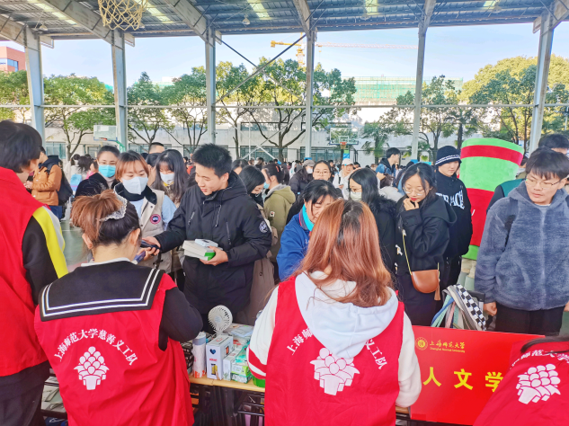 12月1日,上海师范大学爱心慈善义卖活动在徐汇、奉贤两校区火热开展。在人文学院党委领导下,人文学院工会、学工办积极推动,学院义工队和研究生会成员精心组织,义卖活动得到了全院师生的积极响应与广泛参与。