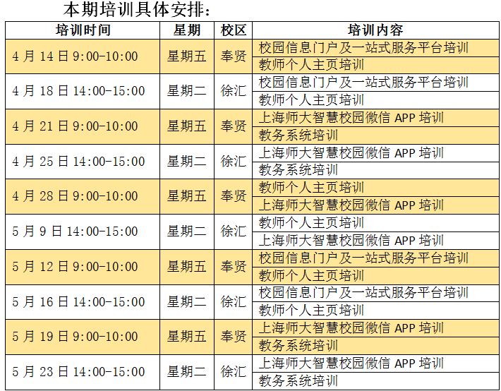 每场培训两个主题,采取现场培训与实践操作的形式进行。培训具体安排详见附件。