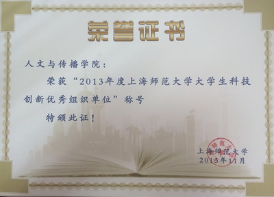 11月22日下午,校第十三届“挑战杯”全国大学生课外学术科技作品竞赛总结表彰大会在徐汇校区会议中心举行。校领导、相关职能部门、有关学院师生代表出席大会。我院师生在本届“挑战杯”中再创佳绩,由我院陈丽菲老师指导、2010级编辑出版学专业学生张嘉瑜申报的《网络环境下实体书店生存现状与转型路径研究——基于上海市70家实体书店的调查》项目荣获了全国三等奖和上海市特等奖;由我院吕元智老师指导、2010级档案学专业学生刘愿愿申报的《数字时代家庭数字遗产管理情况调查与对策研究——以上海市为调研对象》项目荣获了上海市二等奖;陈丽菲老师、吕元智老师获“2013年度上海师范大学大学生科技创新优秀指导教师”荣誉称号;2010级编辑出版专业张嘉瑜等十一位同学获“2013年度上海师范大学大学生科技创新先进个人”荣誉称号;我院也荣获了“上海师范大学大学生科技创新优秀组织单位”的荣誉称号;会上,我院张嘉瑜同学作为全校获奖学生代表作了交流发言。