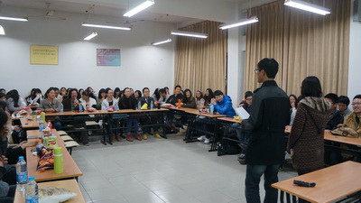 2012级中师1班导生孙诗韵与2013级中师1班团干部一起商量班级活动时了解到因为班级人数多、男女生互动少,很多同学之前相互不认识,于是导生决定策划一次以游戏为主导的破冰会,希望以轻松愉快的互动方式加深其相互之间的了解,营造一个良好融洽的氛围。在这次的活动中,男生和女生分别准备了节目,男生们表演了带有现代气息的校园小品,乐趣横生;女生们则表演了歌曲改编串烧,诙谐幽默的歌词唱出了师范生的心声。之后又进行了男女生互动的游戏,增进了同学间的了解和友谊。