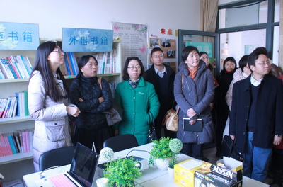 学工系统负责人一行分别参观了位于我院34号楼的园区职业发展教育工作室“三味书屋”与“百草园”、园区党员先锋岗、位于35号楼的园区慈善爱心屋“人文YOU衣库”、心理健康教育工作室“馨语心苑”等特色活动室。我院辅导员王珏(第五园区原区长)、戚静、阳红梅、戴宁宁分别作为活动室的负责人为大家作了细致的讲解。院副书记朱惠军就学院依托园区开展思想政治教育工作进行了简短的交流。