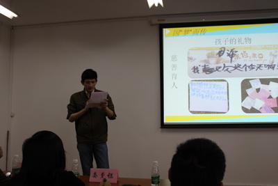 5月9日上午9点,校学工部在徐汇校区会议中心5号会议室举办了慈善工作优秀集体评选答辩会,以学工部、校基金会、其他高校同行组成的评审团对我校各学院的慈善工作进行了评审。我院资助工作辅导员阳红梅老师代表学院进行了汇报,最终我院与信机、谢晋、生环、商学院5个学院在所有十一个参评学院中获评校慈善工作先进集体。我院义工队主要成员为来自非毕业班的185名困难生,我院慈善工作亦是围绕这一特殊群体,全面整合学院资源,充分结合专业优势,落实实践育人、慈善育人。既有充分结合专业开展的义工队服务项目,如中文师范专业“爱心陪伴,幸福成长----成长阅读”活动、社工专业学生为海湾残疾人照料机构“阳光之家”开展的助残活动,又有师生联动,共同服务于义工们的慈善育人活动,如我院的“人文you衣库”项目、教工党支部设立人文爱心基金等。在答辩环节,评委们充分肯定及赞赏我院慈善工作困难生参与度高、充分结合专业特色、师生联动慈善育人。 5月7日周三下午3点学工部在奉贤校区大学生活动中心204室举办了校特色义工项目评选答辩会。此次特色义工项目共收到32份申请表,经评议选出20个项目进入5月7日答辩环节,通过评委答辩现场亮分,根据成绩排名确定前10名为最终通过评审的特色义工项目。我院“爱心陪伴,幸福成长——成长阅读”活动获得全场最高分,这也是该项目连续第三年被评选为校“特色义工项目”。