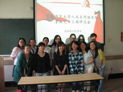 2014年5月22日下午,“创建基层服务型党组织建设”——人文与传播学院2014年上半年主题党日评选会在徐汇校区三教408室顺利进行。院党委组织员陈重来老师、研究生党建负责人王雅婷老师和奉贤学生党建负责人戚静老师担任评委。