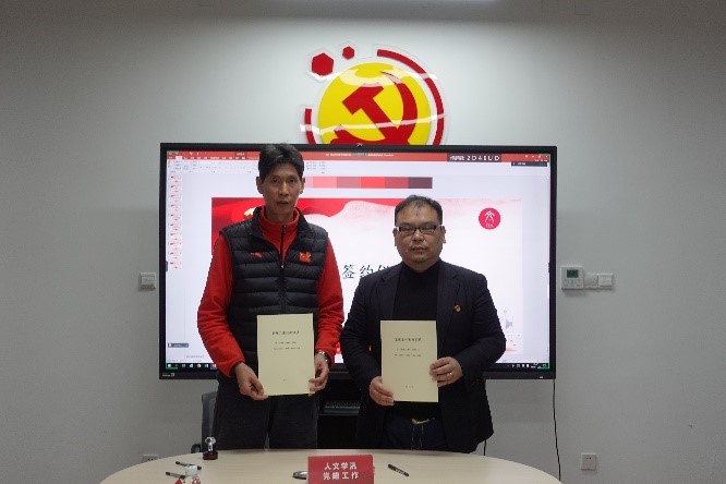签约仪式后,人文学院党委书记潘黎勇作总结讲话。潘老师介绍了学院情况和党建概况,并从提升高校党支部“内运力”“创造力”和“向心力”三个维度就如何提升党支部组织力建设,强化党建引领谈了思考与认识,他指出学院党建必须紧紧围绕校院中心工作、紧密结合立德树人要求,要以“党建+”的形式为学院发展注入强劲动力。