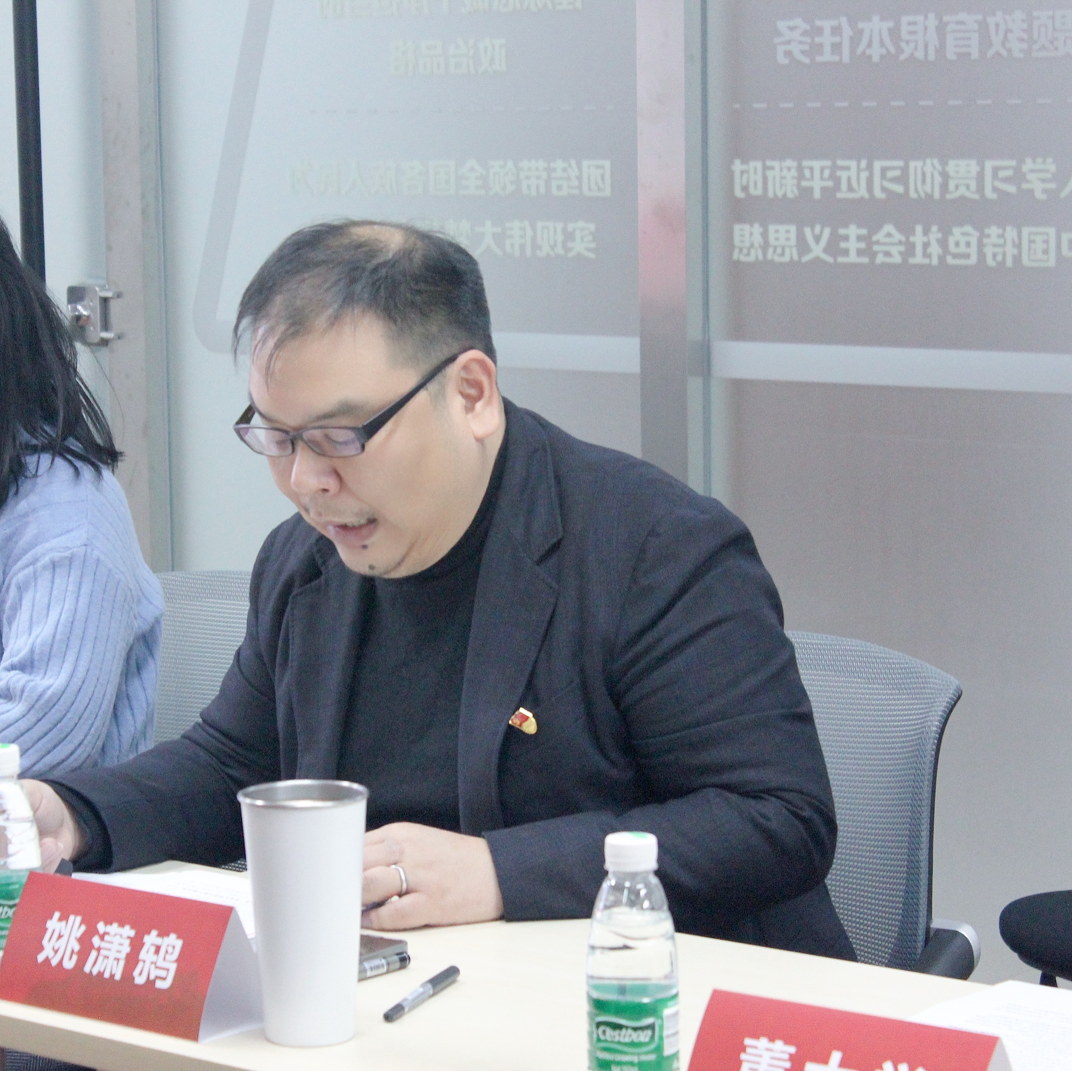 人文学院副院长、教工第四党支部书记姚潇鸫结合“知史鉴今,讲史铸魂”品牌项目的打造分享了支部创建全国样板党支部的做法。他谈到,本支部将始终以课程思政建设、弘扬红色文化和服务社会为工作抓手,充分发挥资政育人功能,并从“知史鉴今,提倡经世致用”“扎根讲台,推进课程思政”“讲史铸魂,助力‘四个自信’”这三方面作了工作汇报。