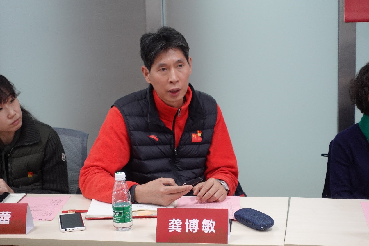 龚博敏书记以“立德树人、强体报国”为分享主题,介绍了“组织力提升工程”“课程思政提升工程”“党建品牌创建工程”和“党建品牌引领工程”四大创建工程,紧扣以“政治建设”为统领、以“立德树人”为根本、以“文化传承创新”为载体、以“护佑百姓身心健康”为宗旨作支部特色展示。