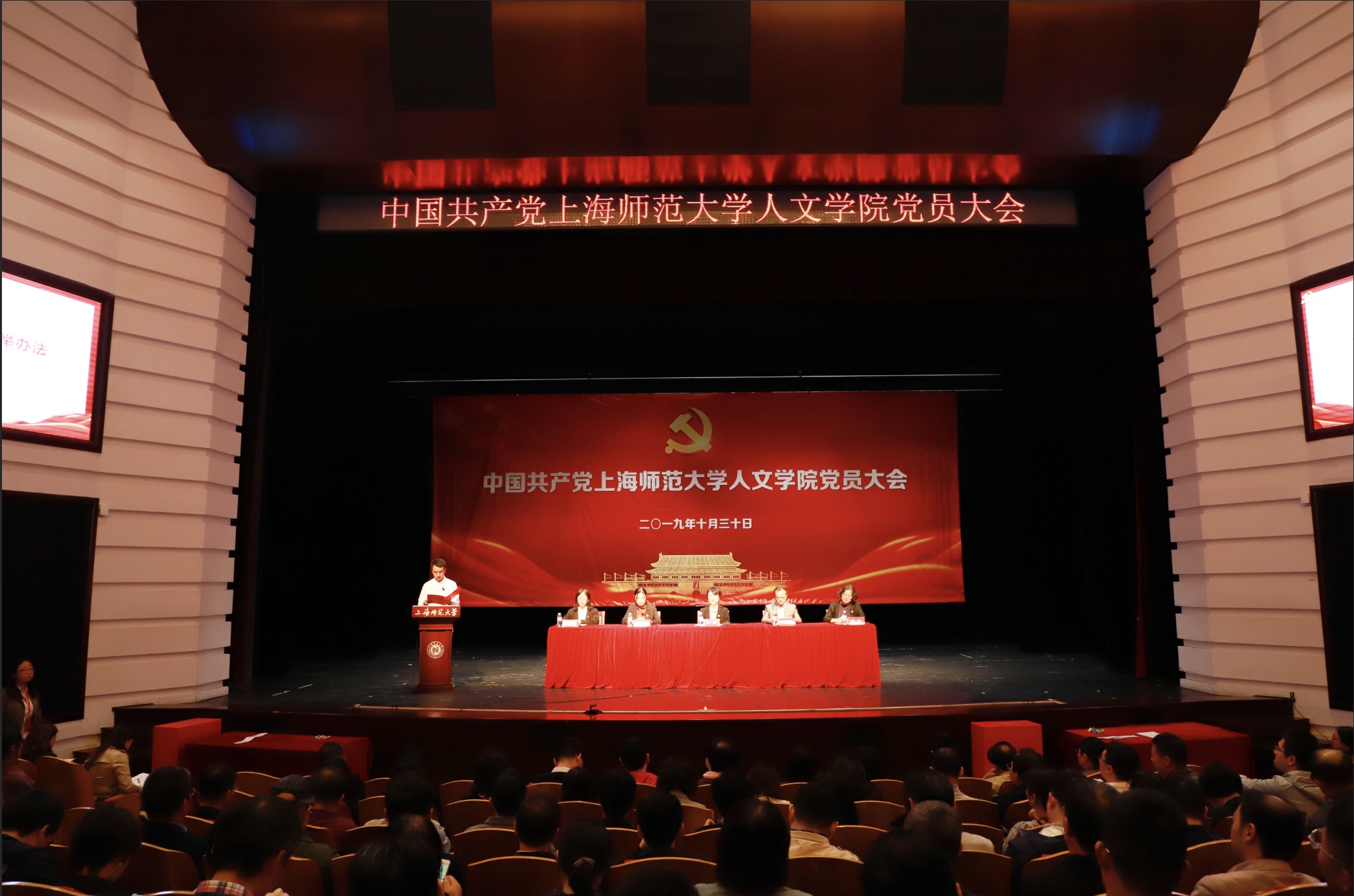 10月30日下午,我院中国共产党党员大会在徐汇校区东部霞棐剧院顺利召开。大会选举增补学院党委委员。学院正式党员参会。会议由学院党委常务副书记朱政主持。