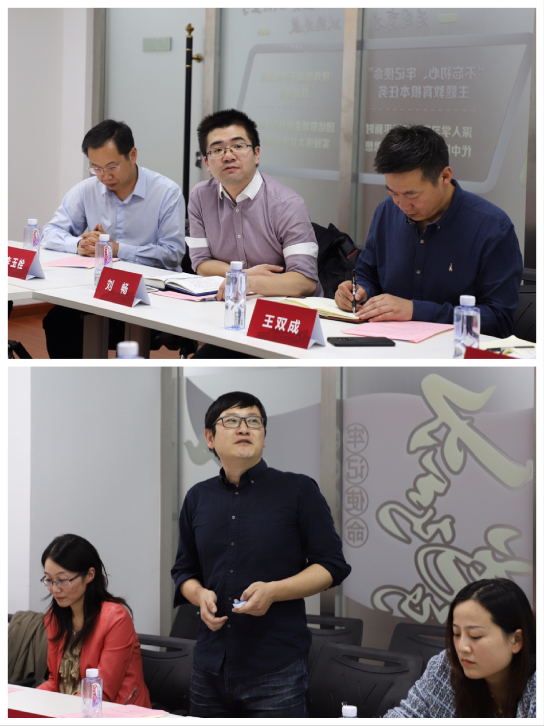 中文系刘畅副教授和世界史系刘义勇副教授作为课程思政领航课程教师代表作主题发言。刘畅老师是人文学院最早参与课程思政教育教学改革的教师之一,他分享了“文学类课程的课程思政实践经验”,提出在课程建设中应突显育人功能,围绕核心素养培养,挖掘思政元素、优化课程内容、强调价值引领,真正实现以课程育人的效果。刘义勇老师是本学期学院新推出的《中国与世界》系列平台课的主要授课教师之一,他以“大国崛起与世界潮流”为题,交流课程思政学习、探索和建设的感悟,他谈到应该紧扣时代主题,帮助学生以兼容并包的思维看待世界和人生,从历史发展的多变中汲取有益的智慧,训练理性思考的能力,培育学生开阔的思维和完善的人格。