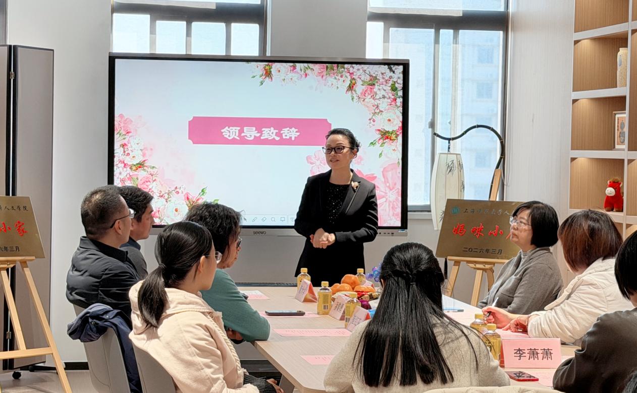 活动伊始,人文学院工会主席董大学主持仪式,向到场领导与嘉宾表示热烈欢迎。校妇委会主任张红英为活动致辞,她高度肯定人文学院在妇女工作中的深厚积淀与亮眼成绩。从奉贤校区“教工小家”与“妇女小家”合二为一,到徐汇校区单独开辟专属空间,学院始终高度重视妇女工作与女教职工关怀。女性研究中心持续深耕、女教授女干部联合会凝聚合力、共谋发展,更斩获上海市教育系统模范教工小家、全国教科文卫体系统模范职工之家等多项荣誉,彰显了人文巾帼的硬核实力。她希望学院能用心管好、用好“妇女小家”与“妈咪小屋”,让其成为有温度、有活力、有凝聚力的暖心之家、幸福之家、奋进之家。