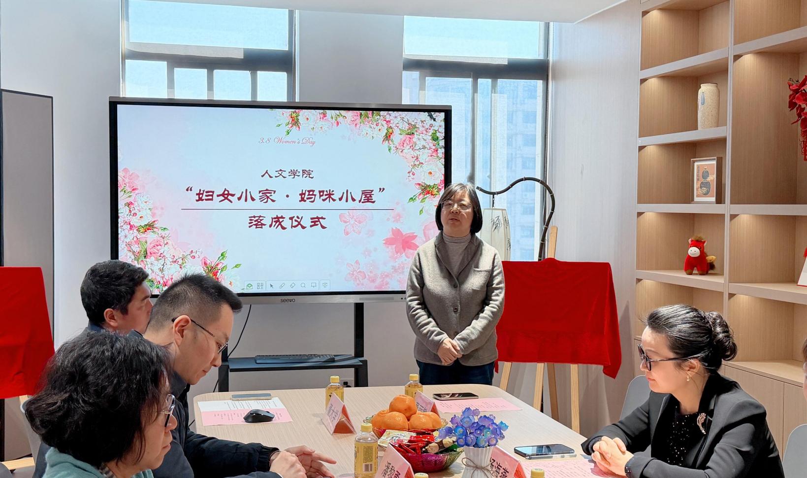 人文学院院长董丽敏首先感谢学校领导的关心与支持,以真挚共情,道出人文女教师的责任、坚守与不易。她谈到,人文学院女教师肩负多重压力:大家自我要求严苛,所面对的学生群体亦以女性为主,同时还要平衡生活、教学科研、考核晋升等多重压力,即便如此依然交出了十分出色的答卷,值得由衷致敬。大家在生活与工作的多重考验中始终全力以赴,令人动容。她指出本次落成的专属空间,不仅是物理上的休憩场所,更是女教职工精神上的温暖港湾。未来可依托这一场地开展更多形式丰富的女性主题活动。