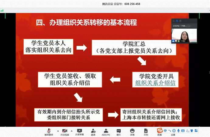 活动最后,学院组织员戚静老师为毕业班党员线上解读党员组织关系转接事项,她希望毕业班党员们能够始终谨记党员身份,强化组织观念,做好毕业生党员组织关系转接。