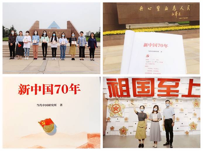 宣誓仪式完毕,出席教师党员向学生党员代表授书。学院党委结合“四史”学习教育精心准备了《新中国70年》一书,扉页上写上了每位党员的政治生日并附以毕业赠言“不忘历史、不忘初心,知史爱党、知史爱国。全心全意为人民服务,为党旗增辉,为师大添彩!”