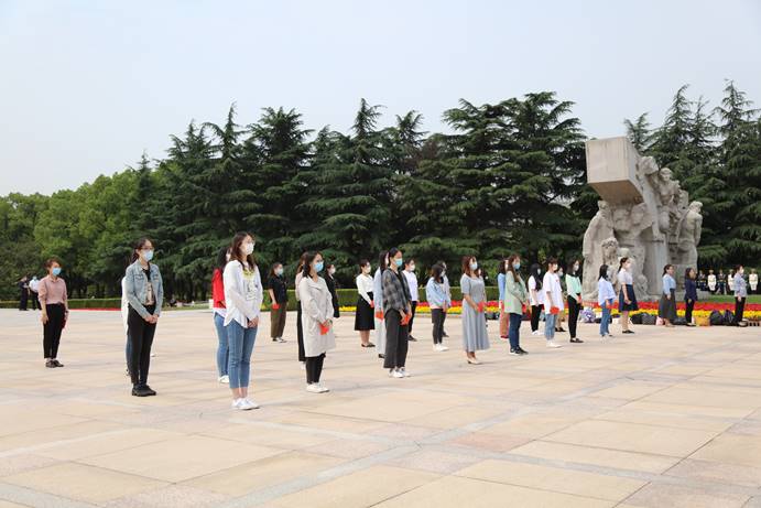 天朗气清,惠风和畅。上午9时,活动正式开始,龙华烈士陵园纪念广场上奏响《中华人民共和国国歌》与《国际歌》。学生党员代表上前敬献花篮,党员师生在纪念碑前肃穆伫立并三鞠躬,向先烈们致以崇高的敬意与深切的哀思,同时悼念在抗击新冠肺炎疫情斗争中牺牲的烈士和逝世的同胞。现场气氛庄严肃穆。