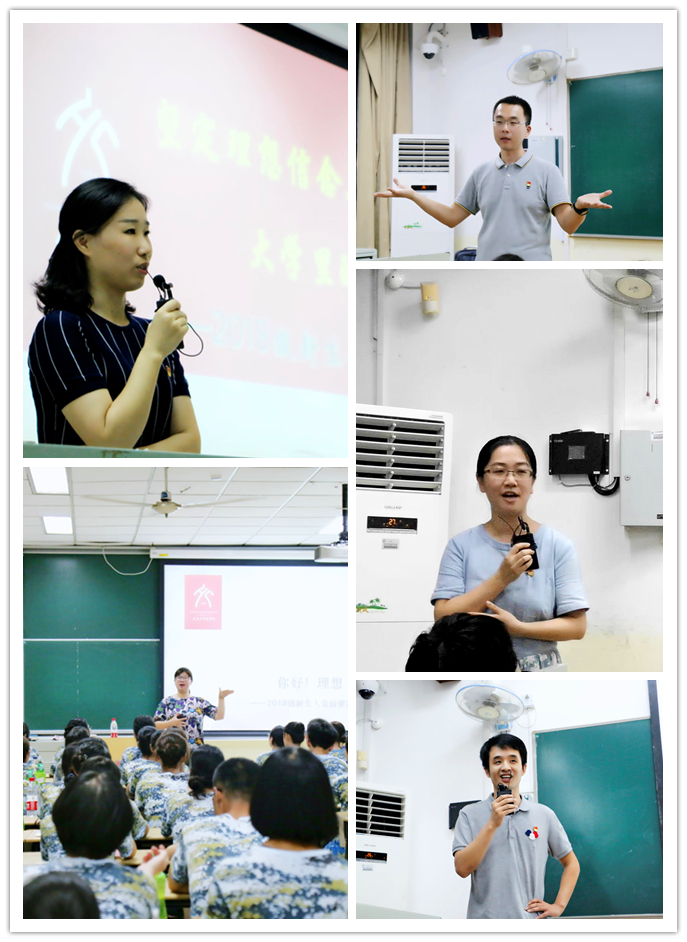 2018年9月1日晚上7点,人文与传播学院张蕾、姚霏、吴冰冰、戴菲、谷俊五名党员教师、班导师来到奉贤校区新生军训联排活动现场,为学院2018级本科新生作《坚定理想信念,大学里的重要一课》入党启蒙宣讲。老师们从“‘00后’的你们,该如何走好大学第一步?”入手,分享了自己的入党“初心”,介绍了大学生身边优秀的同龄人事迹,指出积极向党组织靠拢是一个人人生的重要选择,号召今天的青年人要坚定理想信念,志存高远,脚踏实地,勇做时代的弄潮儿。