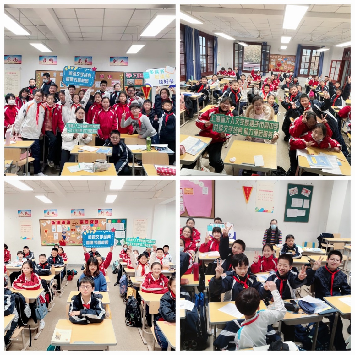 2021年7月,中共中央办公厅、国务院办公厅印发《关于进一步减轻义务教育阶段学生作业负担和校外培训负担的意见》,要求提升学校课后服务水平,满足学生多样化需求,拓展课后服务渠道。政策出台后,上海师范大学人文学院党委与上海市第四中学共建,学院学工办积极行动,在市四中学六年级试点推出“好书经典导读”课后服务项目。