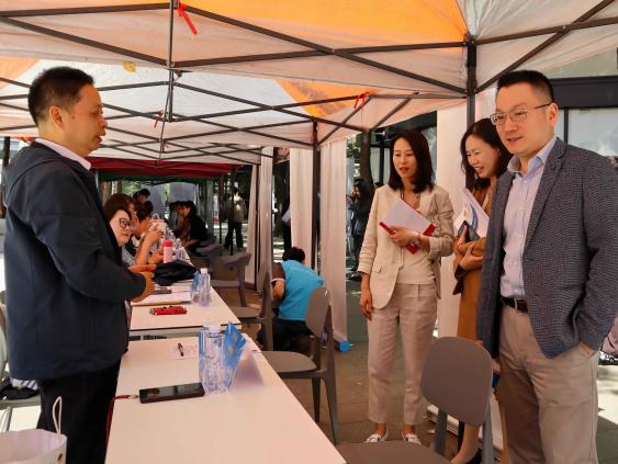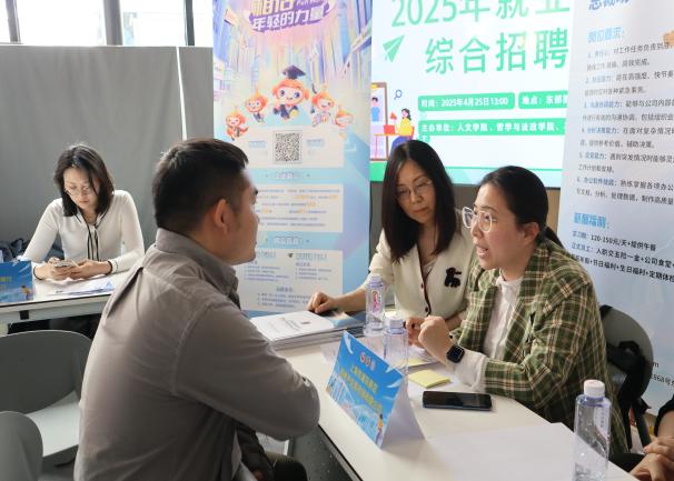 为深入贯彻落实党中央、国务院“稳就业保就业”决策部署,积极服务有用工需求的用人单位做好招聘工作,助力青年学子高质量充分就业,4月25日下午,在我校就业办的指导下,由人文学院、哲学与法政学院、马克思主义学院联合主办的2025年就业/实习综合招聘会在徐汇校区东部学生园区思享屋及主干道顺利举办。此次招聘会吸引了30余家优质用人单位参与,各学院党政班子、院办主任、就业工作专员以及辅导员等来到现场,与优质用人单位代表深入交流,共话人才培养与发展,该招聘活动吸引了东部园区广大应届毕业生和低年级研究生积极参与,共赴春天的就业实习之约。
