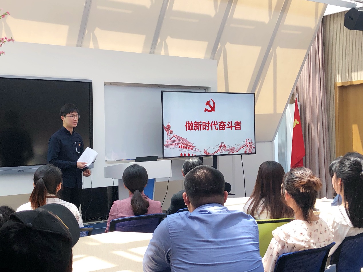 2015级汉语言文学(师范)专业周晓同学以《奋斗让青春出彩》为题,从严庚初烈士主办《学生报》的故事出发,回顾在救亡图存的解放年代青年们的使命与担当,为同学们讲述了毕业生党员的初心与责任。身为师范生的他已经成为“中国青年志愿者扶贫接力计划第21届研究生支教团”中的一员,即将奔赴贵州参与支教事业,为新时代贡献自己的青春力量。他坚信:“教育可以让落后地区的孩子们真正在精神上实现脱贫。”他用习近平总书记对当代青年的六大希望激励自己:要树立远大理想、热爱伟大祖国、担当时代责任、勇于砥砺奋斗、练就过硬本领、锤炼品德修为,以实现中华民族伟大复兴为己任,在岗位上建功立业,为实现中国梦贡献自己的力量。