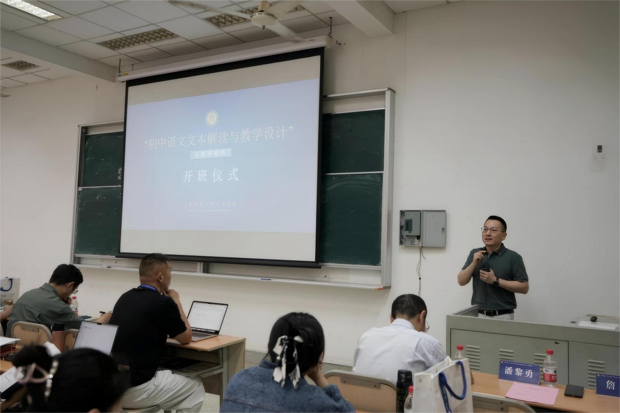 针对本次研修班,潘黎勇书记指出,人文学院从前期策划到实施环节均秉持精益求精的态度,旨在整合顶尖专家资源,聚焦 “初中语文文本解读与教学设计” 核心议题,为初中语文教师专业能力提升提供实质性的学术支持与实践指导。最后,他再次向远道而来的学员表达欢迎,并衷心祝愿大家在研修中收获满满、学有所成。
