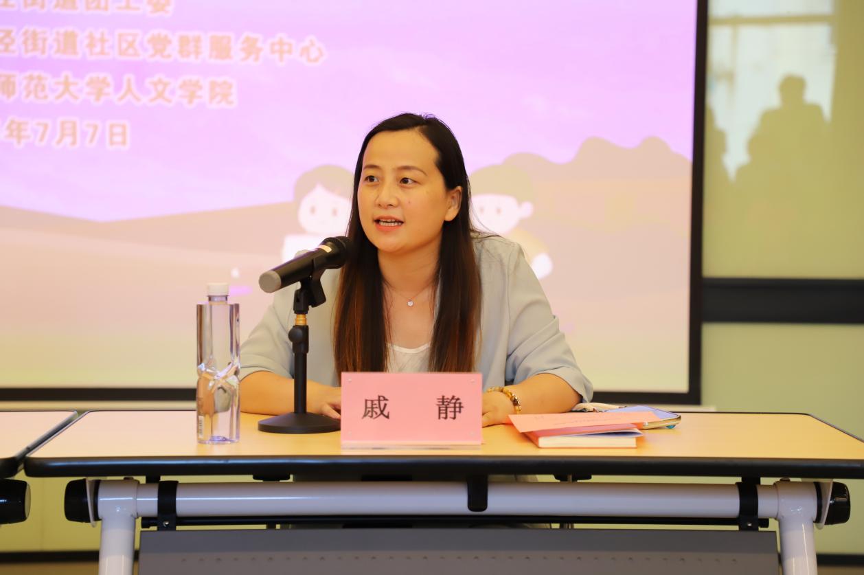 戚静回顾了校地共办“爱心暑托班”的历程与成效;勉励大学生志愿者弘扬志愿精神,学以致用、用心服务,积极做好暑托班志愿教学和服务工作;并寄语小朋友们在暑托班度过一个安全、快乐、有收获的假期。